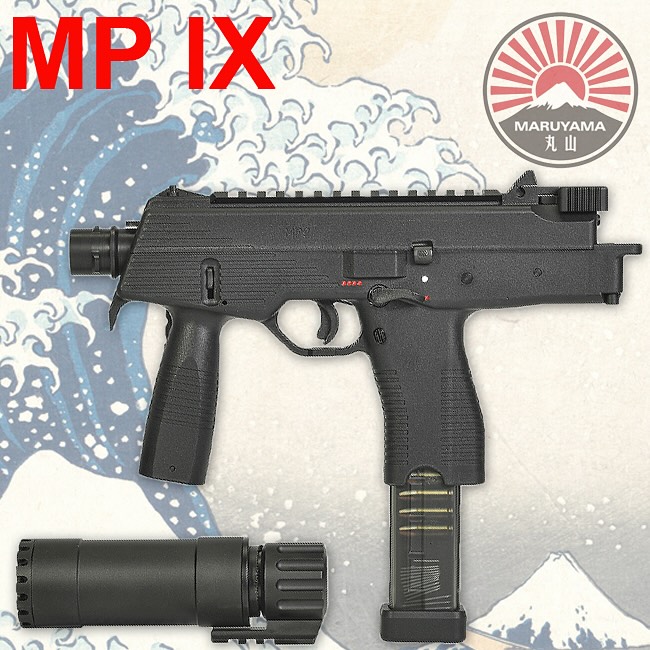 Neu im Sortiment: Das Maruyama MP IX Airsoft Gas Blow Back SMG Deluxe Set mit Schalldämpfer-Attrappe
